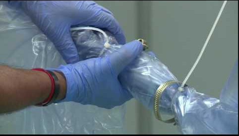 Kỹ thuật viên vận hành chỉ cần gấp đôi túi đã sử dụng, bịt kín nó và cắt nó giữa các đường nối túi an toàn có tích hợp tay áo phụ trong đó giúp người vận hành có cắt bỏ phần còn lại từ túi cũ một cách rất an toàn