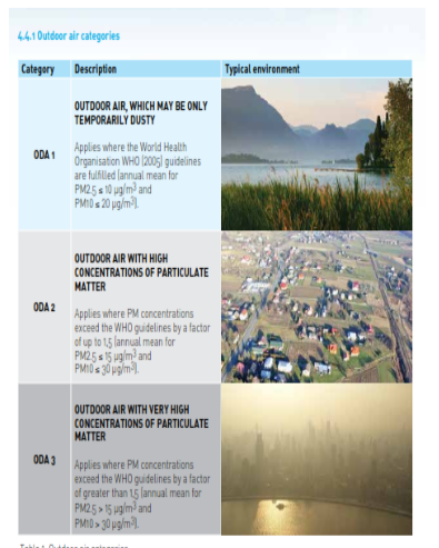 Bảng khuyến nghị về hệ thống thông gió cho từng không gian riêng biệt