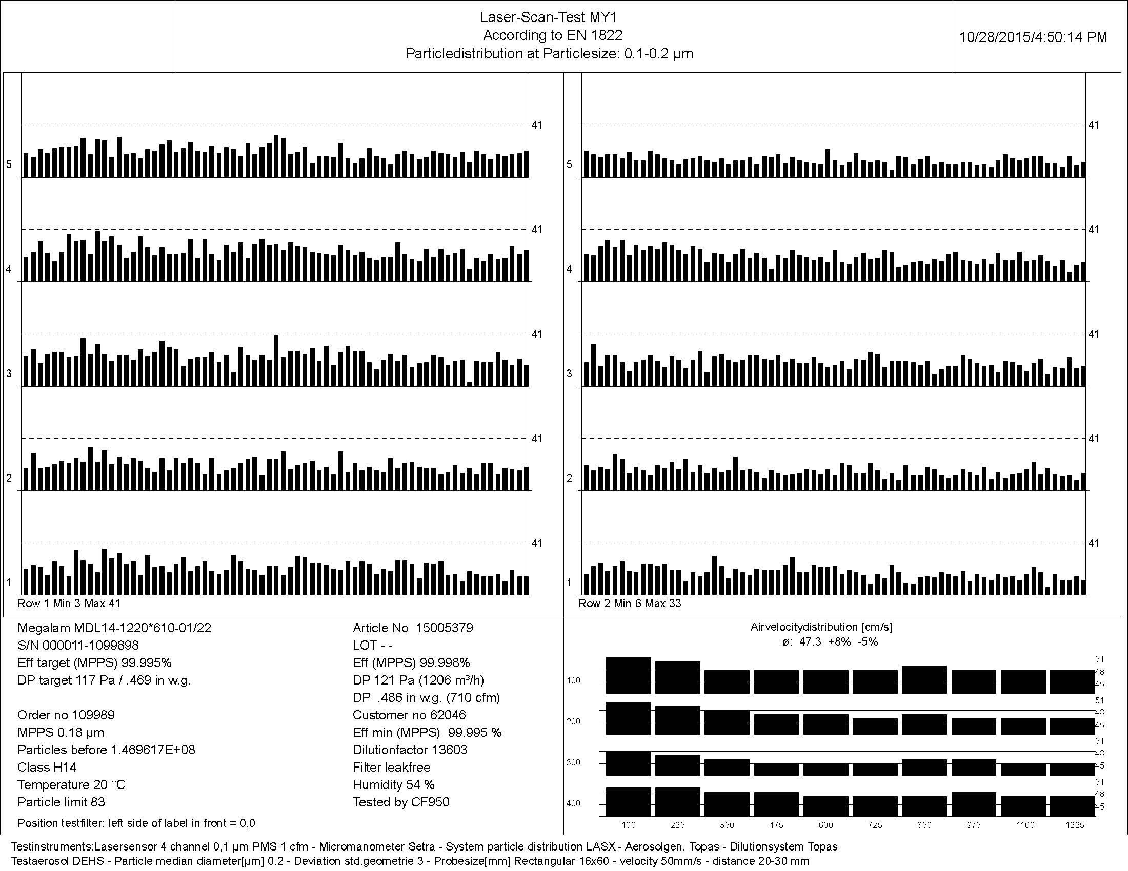 Thông thường, mỗi bộ lọc HEPA được kiểm tra theo tiêu chuẩn của nhà sản xuất trước khi xuất xưởngvà đi kèm với một báo cáo thử nghiệm (Test Report) và nhãn dán hiển thị kết quả thử nghiệm. Để chắc chắn, bạn nên tìm kiếm các sản phẩm chính hãng của các nhà sản xuất quốc tế và yêu cầu một bản sao của báo cáo thử nghiệm thực tế, trong đó nên cần có kiểm tra thử nghiệm lưu lượng dòng khí, sức cản và sự thâm nhập.