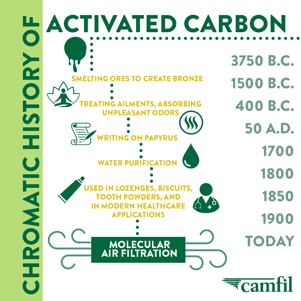 Có vẻ như việc sử dụng than hoạt tính đầu tiên có lẽ được thực hiện bởi người tiền sử cho một mục đích hoàn toàn khác ngày nay. Từ thời đồ đồng, loài người sử dụng than hoạt tính để loại bỏ tạp chất trong kim loại luyện để sản xuất đồng. Người Ai Cập cổ đại cũng phát hiện ra một tác dụng khác của than hoạt tính, và nó hoàn toàn không liên quan đến việc lọc không khí - chất bảo quản.