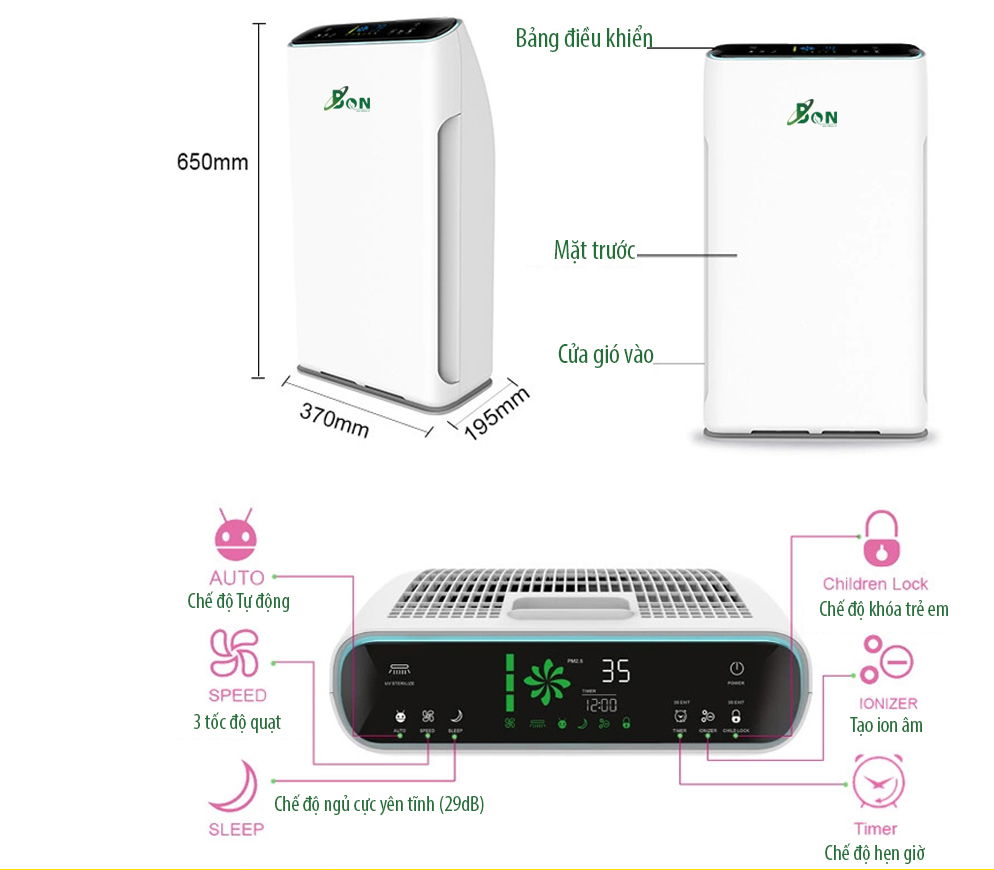 - Chế độ tự động: Các cảm biến tự đo chất lượng không khí và hoạt động một cách tự động