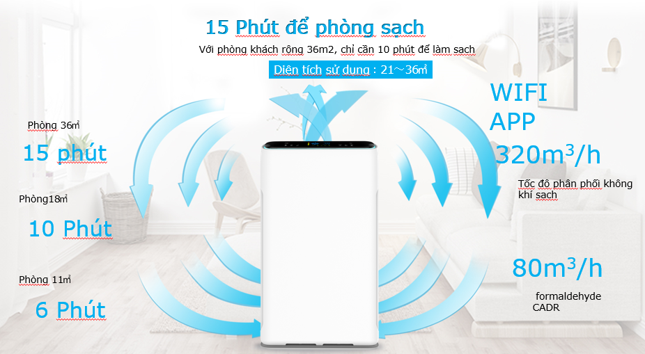 Thông thường, khách hàng lựa chọn máy lọc không khí theo diện tích sử dụng. Điều này không sai, nhưng chưa chính xác. Tốt nhất, bạn nên chọn theo thể tích phòng, dựa vào thông số CADR trên máy. CADR - (Clean Air Delivery Rate) - Tốc độ phân phối không khí sạch là một trong những thông số quan trọng bậc nhất của một máy lọc không khí. Chỉ số này có thể hiểu nôm na là lượng không khí tối đa máy có thể làm sạch trong 1 giờ, ở tốc độ quạt cao nhất. Quý vị có thể xem thêm thông tin về CADR tại đây.